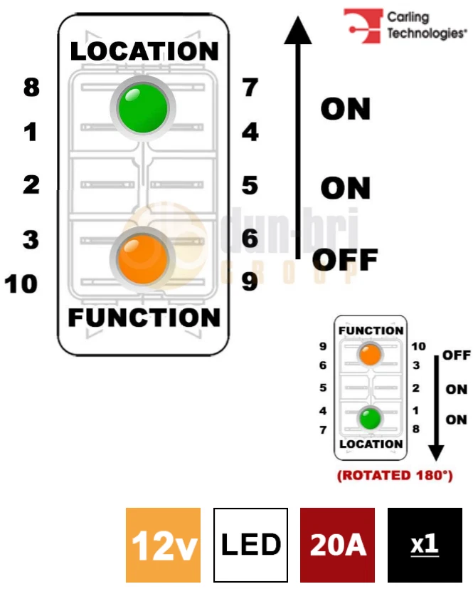 2x Carling Technologies Vld1s00b Azc00 000 Rocker Switches Dp On Off On 20a 12v Sealed Non Il Amazon Co Uk Diy Tools